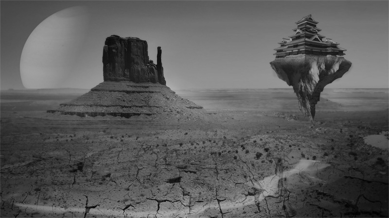Late one night I decided I should merge a bunch of photos into some random..... used photos from Japan, Nevada, Utah and I created some parts to make them fit. This was my first Fantasy piece like this
